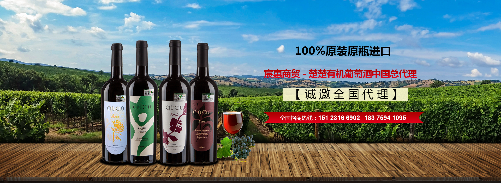 根據不同進貨額度,總部每年給予返利和返點支持,銷售越高,獲利越多2015年11月14日,意大利CIU'CIU'有機葡萄酒品鑒會暨重慶市宸惠(酒業)商貿有限公司招商說明會在重慶維景大酒店成功舉辦!在此宸惠酒業全體員工感謝自意大利遠道而來的CIU’CIU’(楚楚)有機酒莊莊主及工作人員親臨現場;感謝重慶MBA葡萄酒協會會長(法國波爾多騎士、法國波爾多盲品挑戰賽中國站冠軍、WEST高級品酒師)的專業品鑒與點評;感謝廣東商會、四川商會...